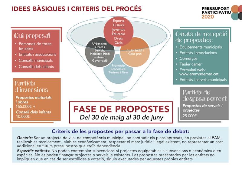 Del 30 de maig al 30 de juny s'obre el termini perquè tots els arenyencs i arenyenques puguin presentar les seves propostes de millora de la vila i que aquestes puguin ser incloses, debatudes i votades en el marc del Pressupost Participatiu 2020.
