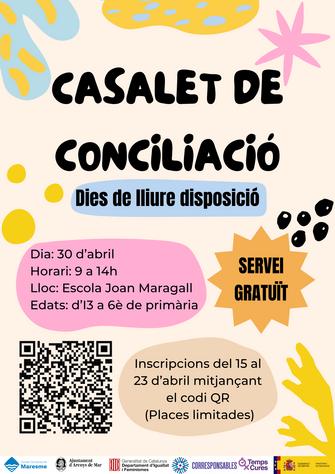 L’Ajuntament d’Arenys de Mar posa en marxa un casalet gratuït coincidint amb el dia de lliure disposició de les escoles, previst per al pròxim 30 d’abril. Aquesta iniciativa s’emmarca dins del programa Temps per Cures del Departament d’Igualtat i Feminismes de la Generalitat de Catalunya i compta també amb el suport del Consell Comarcal del Maresme.